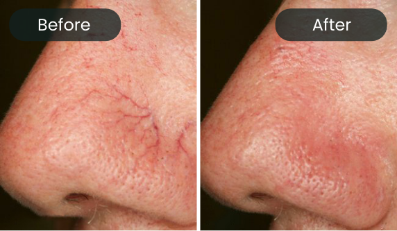 Depending on the size and severity of the vessels, more than one session will usually be required. The number of treatments varies between patients and will be discussed during your consultation. Changes may be seen over time, and in some cases, additional sessions may later be considered if new vessels appear.